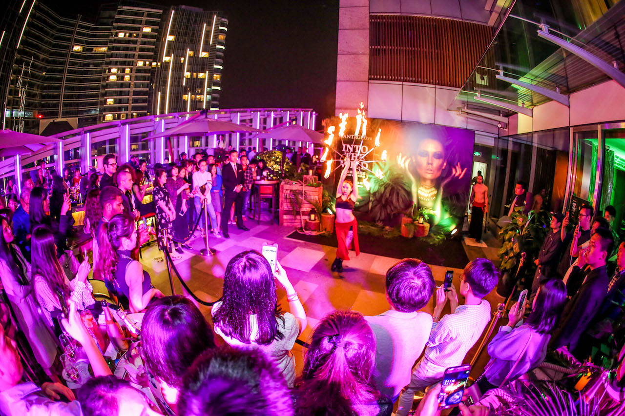 St Regis Chengdu revealed its wild side during the re-opening of Vantage XXVII roof top bar last week. The upscale venue welcomed back guests after the winter break, ready for another long summer of sunshine, cocktails, music and dancing. Paving the way for the season ahead, the bar was transformed into a tropical, jungle inspired oasis, featuring mysterious models dressed from head-to-toe in leopard print costumes. The panoramic hotspot was filled with glamorous guests sipping on champagne and cocktails as they danced the night away and dazzled at the fire spectacular. Riviera Chengdu enjoyed providing event planning and entertainment for this fun re-launch.