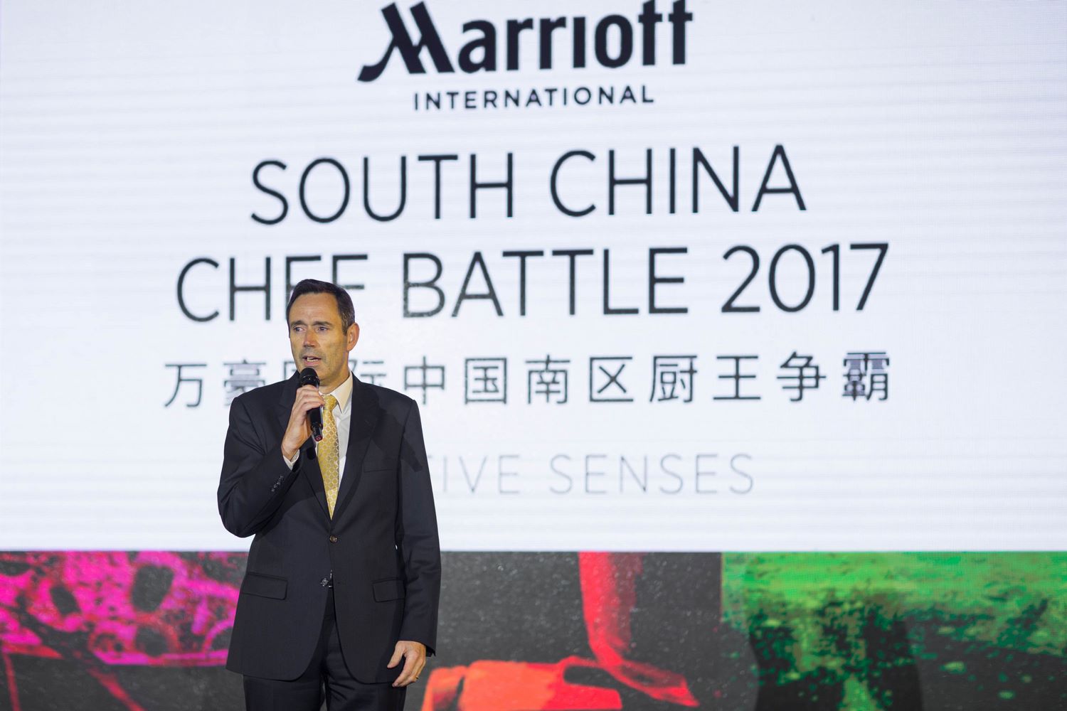 万豪华南区厨王争霸是一场现场烹饪比赛。在这里,来自万豪集团华南地区各大酒店精选出来的顶级厨师集聚一堂,一同来争夺厨王的头衔。今年5月11日,紧张激烈的初赛在深圳前海JW万豪酒店举行,经过层层选拔,比赛角逐出了6名顶尖厨师参加7月6日于深圳金茂万豪酒店举办的决赛。里维拉深圳办公室协助了本次活动的策划与执行,别出心裁地通过引入五种色彩以代表五种感官,给宾客带来与众不同的感受。6名厨师分别展示了6道精心准备的菜肴,活动现场由声音,视觉和气味营造出了诱人的感官体验。里维拉非常荣幸可以支持万豪国际集团这一为客人提供独特烹饪体验的标志性活动.