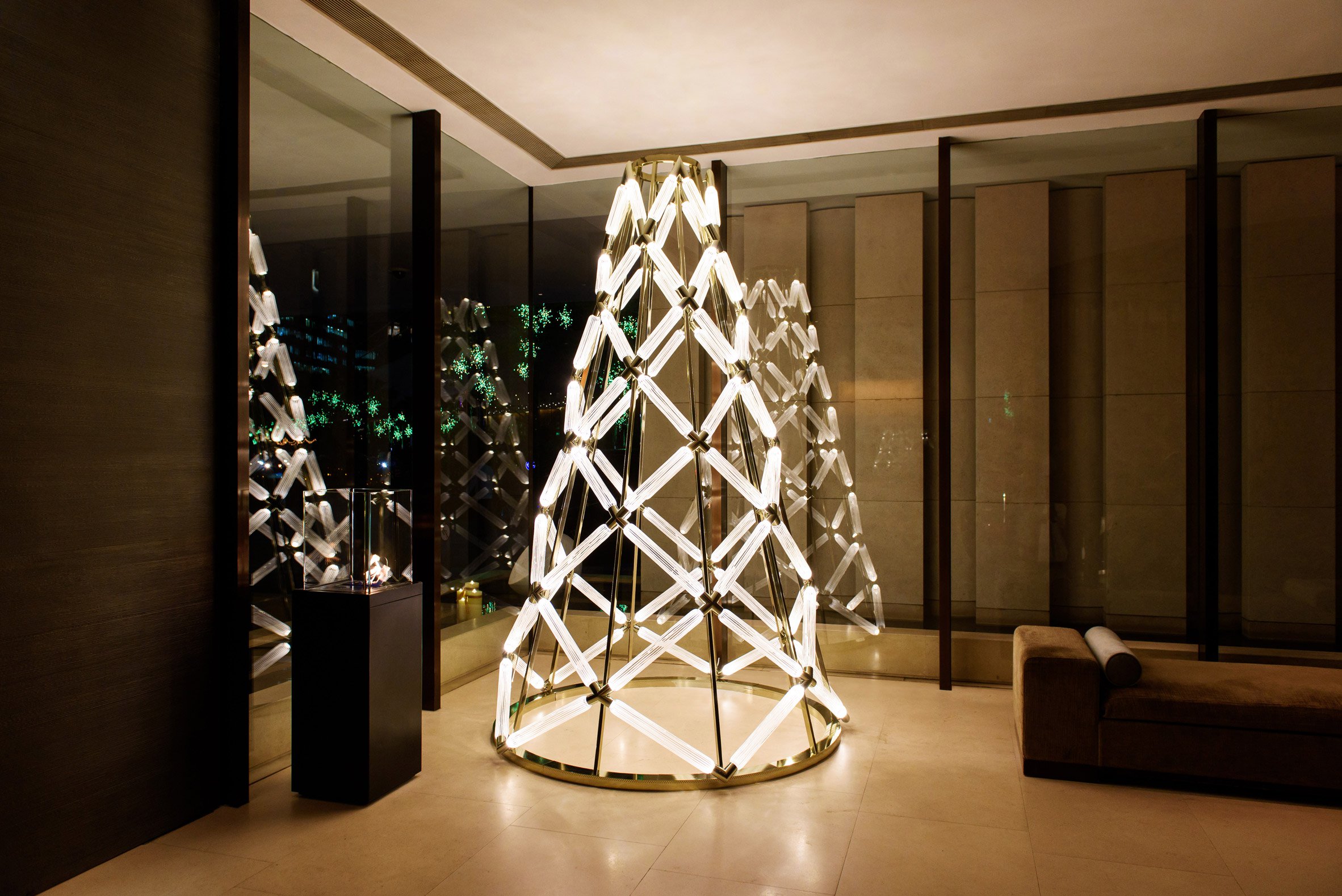 随着圣诞佳节的临近,我们也陆陆续续看到世界各地回应圣诞节的流行趋势。其中最受瞩目的创意圣诞树装置分别在伦敦的Claridge’s酒店、香港的奕居酒店,还有上海的新天地亮相。最具英伦风情的伦敦Claridge’s酒店最近揭晓了其2017年度圣诞树,由传奇设计师Karl Lagerfeld顷力设计。即使与2015年博柏利金属雨伞圣诞树以及2016年情境式登箱圣诞树相比,Karl的设计也毫不逊色。今年的圣诞树缀满了传统的银色亮片、羽毛、雪花、蜡烛以及镜面,倒挂在酒店的天花板上,让人眼前一亮。香港奕居酒店今年也别出心裁,利用发光玻璃管制成独树一格的圣诞树,充分展现出传统的手工技艺、有着戏剧性的纹理以及具有当代感的造型。而就在上海,一个超大的互动水晶球圣诞树空降新天地,人们可以走进这棵圣诞树并通过触摸内部的各种面板来改变圣诞树的外观。每年的圣诞树都越来越令人惊艳且抽象,如果您刚好在这些地区,赶快去欣赏这些极富创意的艺术装置,感受圣诞气氛吧!